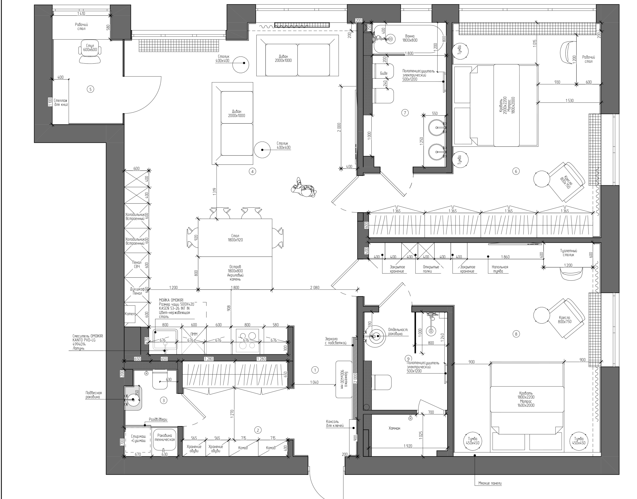 Основное внимание уделено качественным материалам, лаконичному дизайну мебели и светлым тонам, способным сделать пространство максимально комфортным, спокойным и визуально цельным.